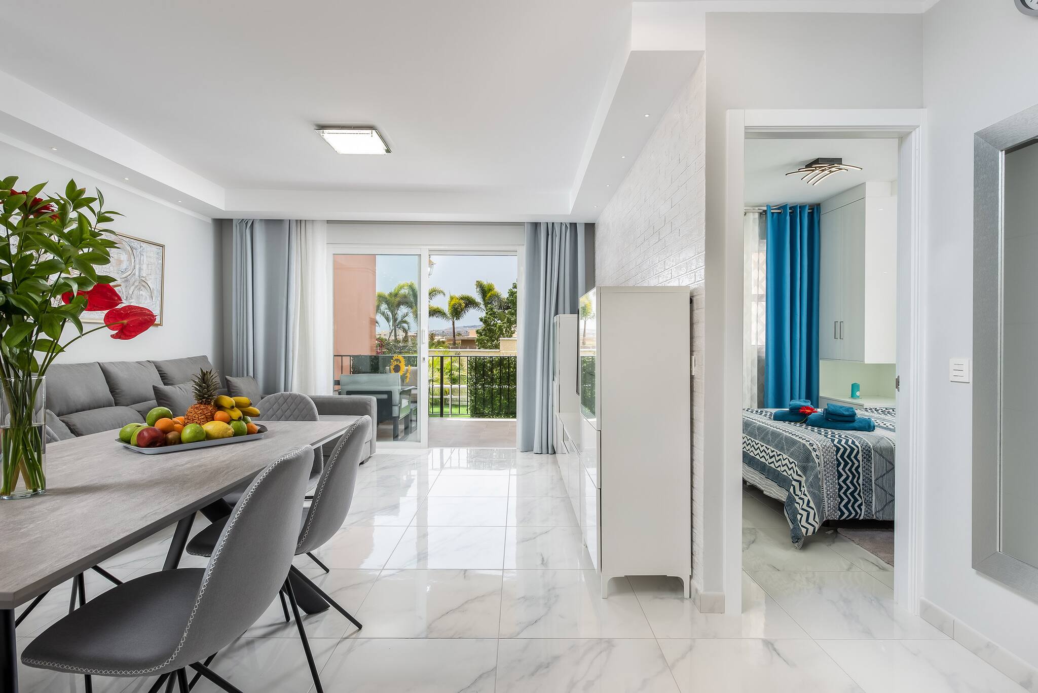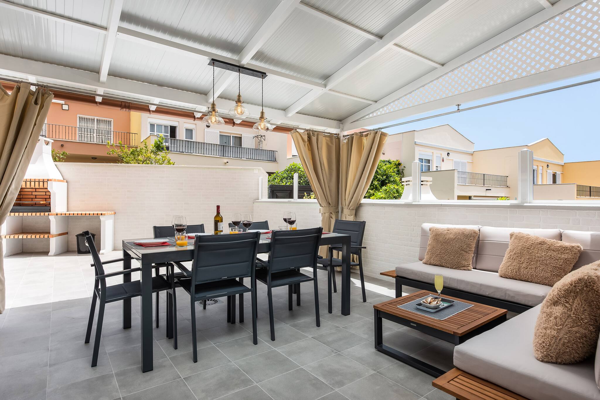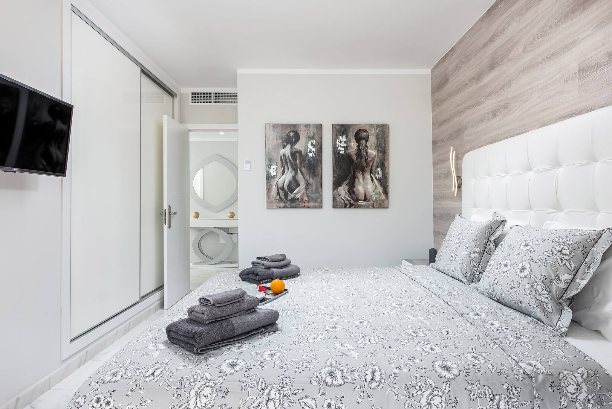 Wonderful terraced house with 4 bedrooms, 4 bathrooms, spacious living room, terrace with dining area, barbecue and stunning ocean views. The villa is new and furnished in a modern and comfortable style, located in a complex with 2 swimming pools, one for adults and one for children. WiFi is available in all areas, air conditioning. Located in a quiet area, 2 minutes walk from the Gran Sur shopping centre. The beach is 5 minutes by car.