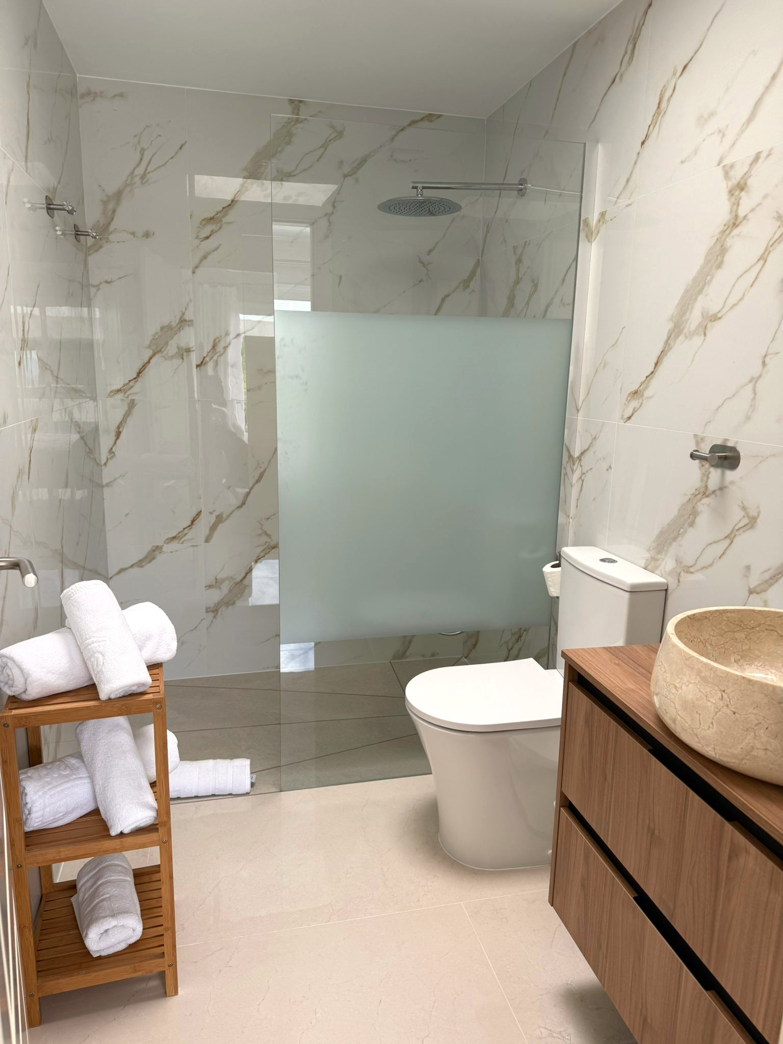 Жилье имеет 3 удобные и versatile спальни, включающие 2 двуспальные кровати, 1 двухъярусную кровать и диван-кровать, что позволяет разместить до 8 человек с полным комфортом. В нем есть 3 ванные комнаты, 2 из которых с душем и дополнительный туалет, что облегчает совместное проживание и обеспечивает приватность.
